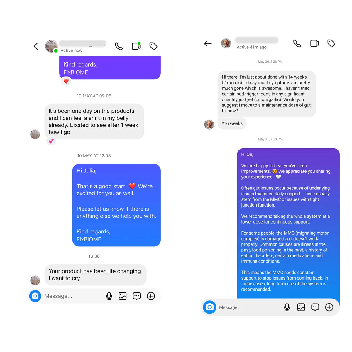 Excellent product. I've suffered with IBS for years and this product has helped ease symptoms greatly. I've been on 4 cycles of half course and am now going to stop. Thank you Fix Biome!